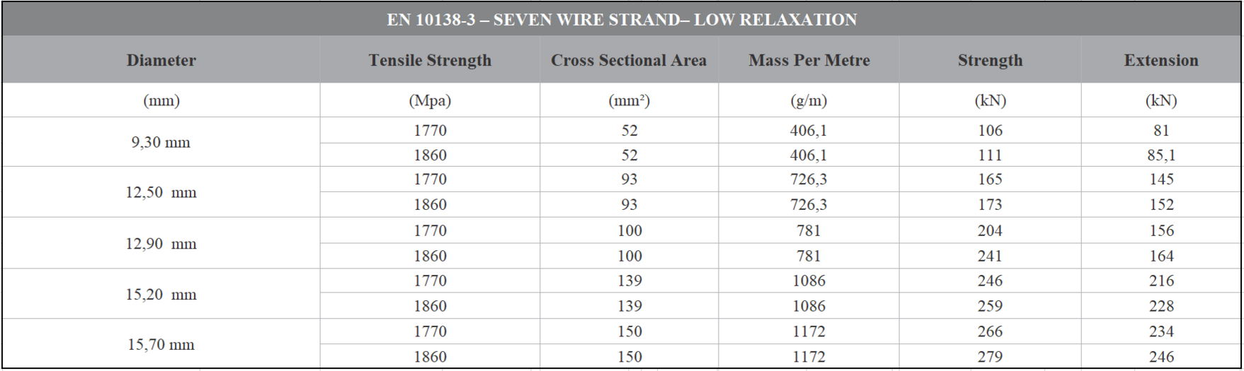 Prestressing is to apply constant stress artificially to structural components before applying external loads. For the prestressing concrete wires and strands in various dimensions, types and resistances, which are produced exclusively, are used Prestressing concrete steel elements are produced by taking stress from high carbon special wire rods with vanadium alloys after a distinct load and a regular patenting treatment.